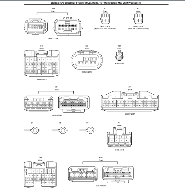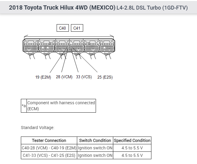 This is making sense to me now. I am struggling to find the info you are looking for and I know why. The only info I have is for a L4-2.7L (2TR-FE) gas engine. I show nothing for a diesel.