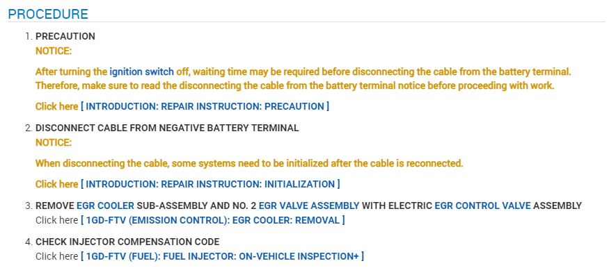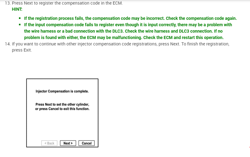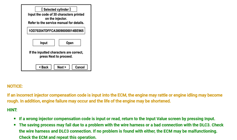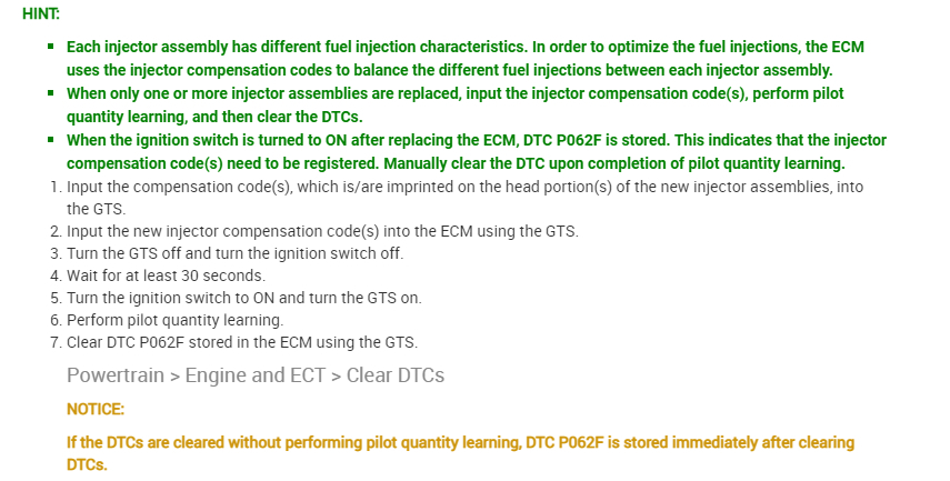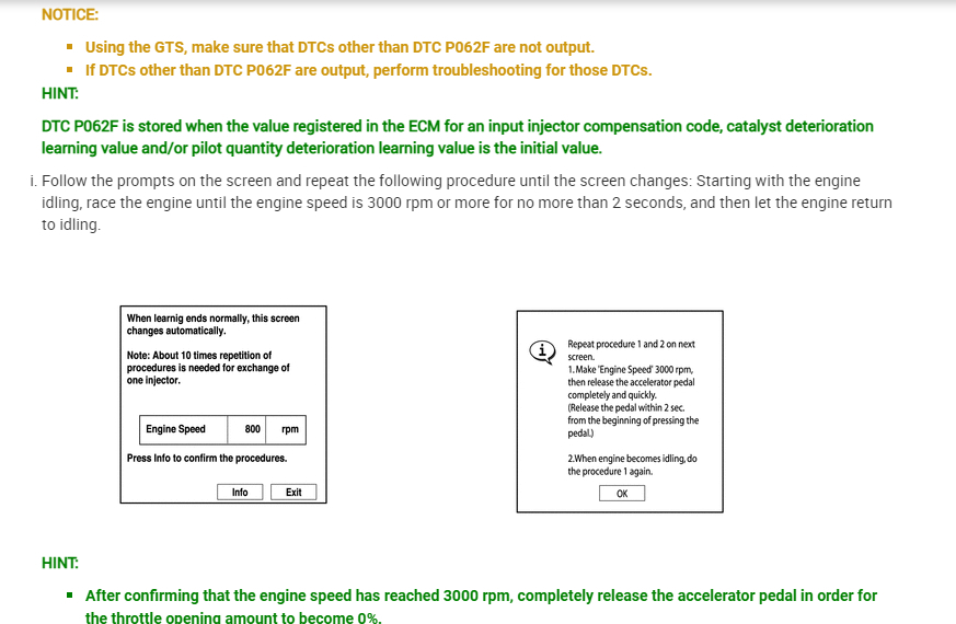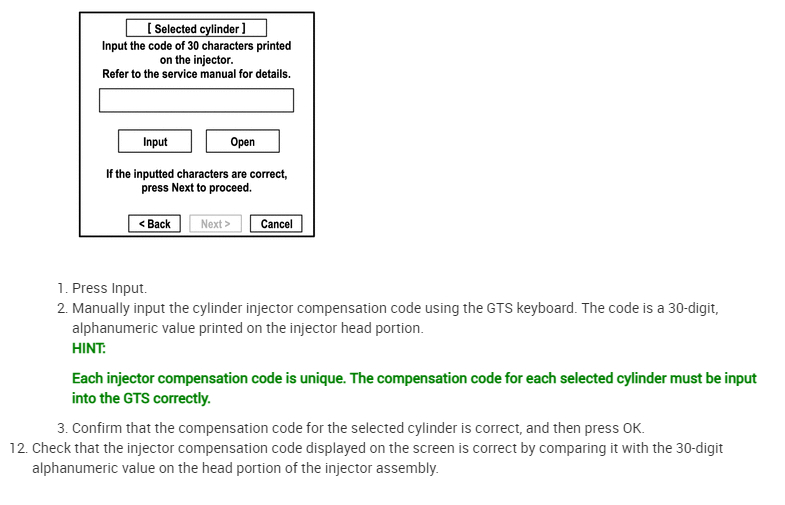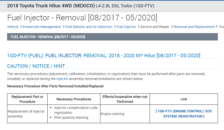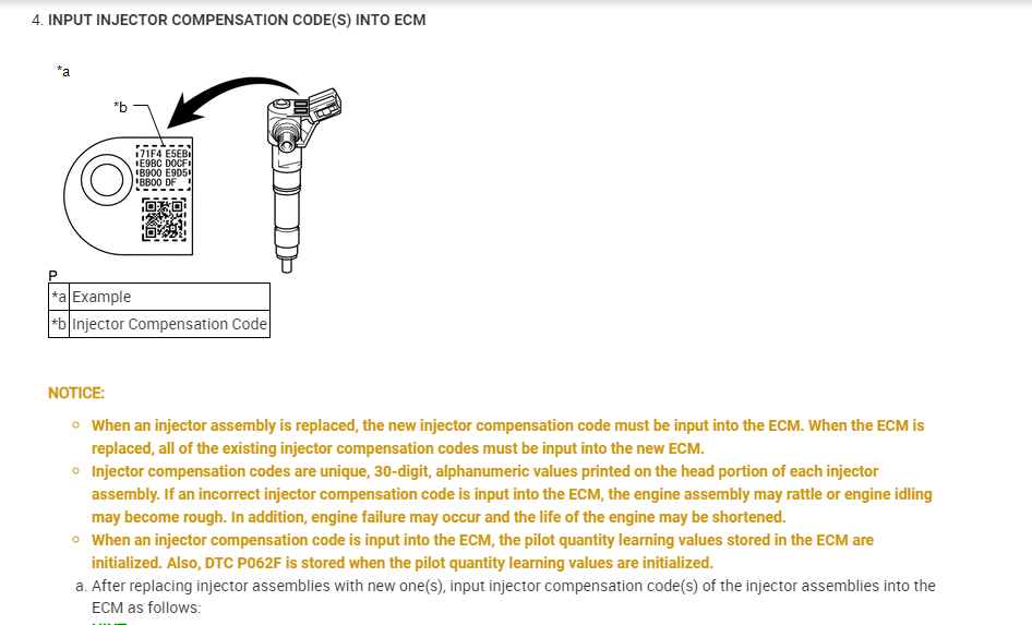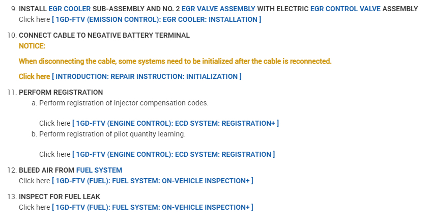 I don't know if you need them, but I attached the directions below. The first 18 pictures are the removal and replacement. The remaining pictures (41) are how to perform the registration information. I can't believe what needs to be done with this. You need to register the injector compensation codes, pilot quality learning, and so on. I attached everything that was in the manual.