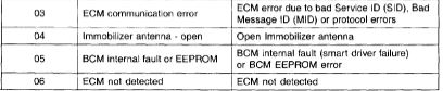 There are four different faults that are assigned to the immobilizer system. Every fault is broken down into four different types (circuit malfunction, circuit range/performance problem, low input, high input). The following table shows the assignment of immobilizer related faults to each type