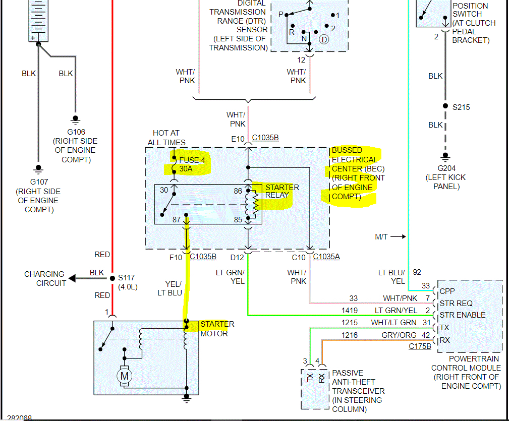 I've got the car listed above GT, 5 speed. It won't crank or turn over starters good everything works windows, radio, etcetera. Just will not start or crank. Swap the relays already nothing, swapped the diodes nothing. Tried turning the steering wheel and up and down and everything nothing even unhook the radio because I heard the radio could be my problem nothing. Bypass the neutral safety switch nothing. Alternators good, fuses are good, and relays are good. Just will not start or crank. When I turn it on the little orange wrench tire pressure check engine light and battery light are all on. When I try to turn the key to the start position the traction control light comes on and the tire pressure light flashes no theft light flashes nothing like that. But it still won't crank. The car has a chip and a tune but unfortunately, I no longer had that sct4 scanner the OBD2 is not working. Previously before this I was driving home, and the throttle stuck made it home turned it off got out unplugged throttle position sensor. I'm glad you back up and the car is not starting back up. It has been 2 months now I've lost my job and everything because of this. Please, please, please, somebody help me and inform me of something I have not tried yet. But the OBD2 is throwing codes that it can't find nothing tells me make sure the keys on. So I'm guessing it's not connecting to the ECM somebody please help. I've even tried tapping on the starter. Thanks in advance a million.