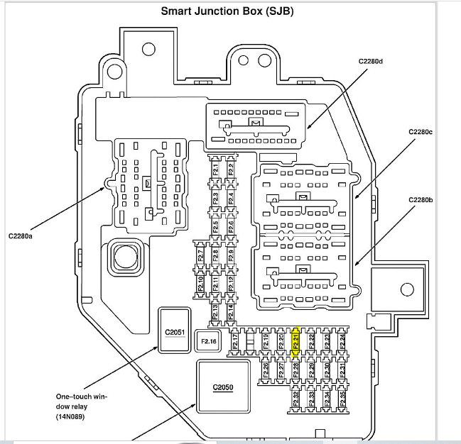 Now, there are three fuses that you need to check. Fuses 9 and 7 in the battery junction box under the hood, and fuse 21 in the smart junction box (right side under dash). In addition, we need to confirm they are getting power. Note the following.