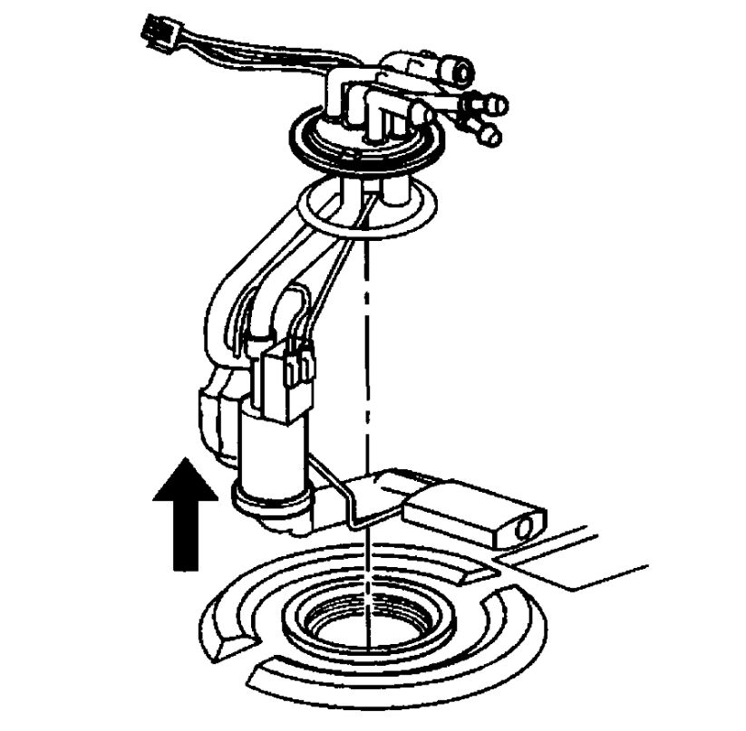 Pull the fuel pump up into the attaching hose while pulling outward from the bottom support.