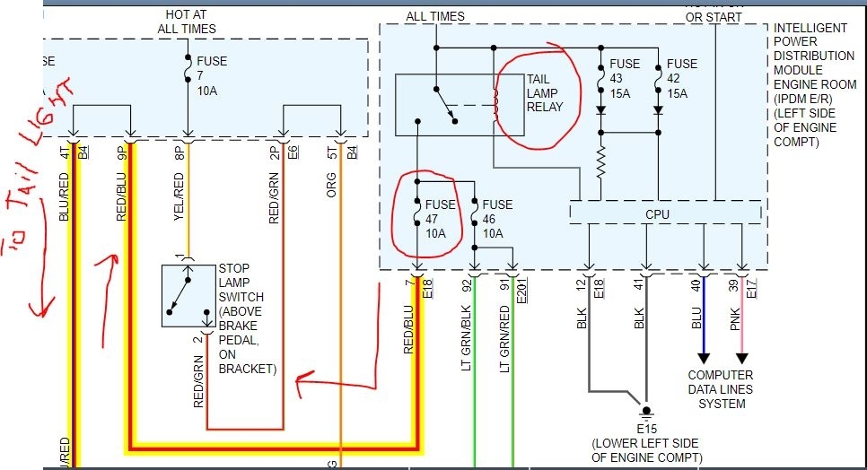There is no power to any of the taillight running light fuses. The only way I can get taillights is to jump the fuse to another fuse. I have checked every fuse none are popped. I read that it could be a taillight sensor in the trunk but I'm unable to find that. Also maybe BCM relay? Help