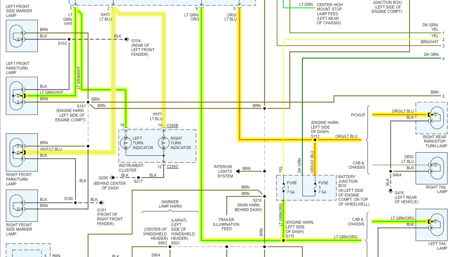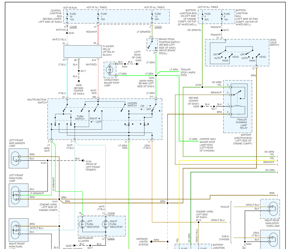 Okay, there are 2 fuses for the turn signals and hazards. You say the turn signals are not working. Do the hazards work? If not, then the fuses would be the first stop. Fuse 1 powers the hazard lights, Fuse 24 powers the turn signals. The power goes from fuse 24 through the switch and out to the turn signal lights.
