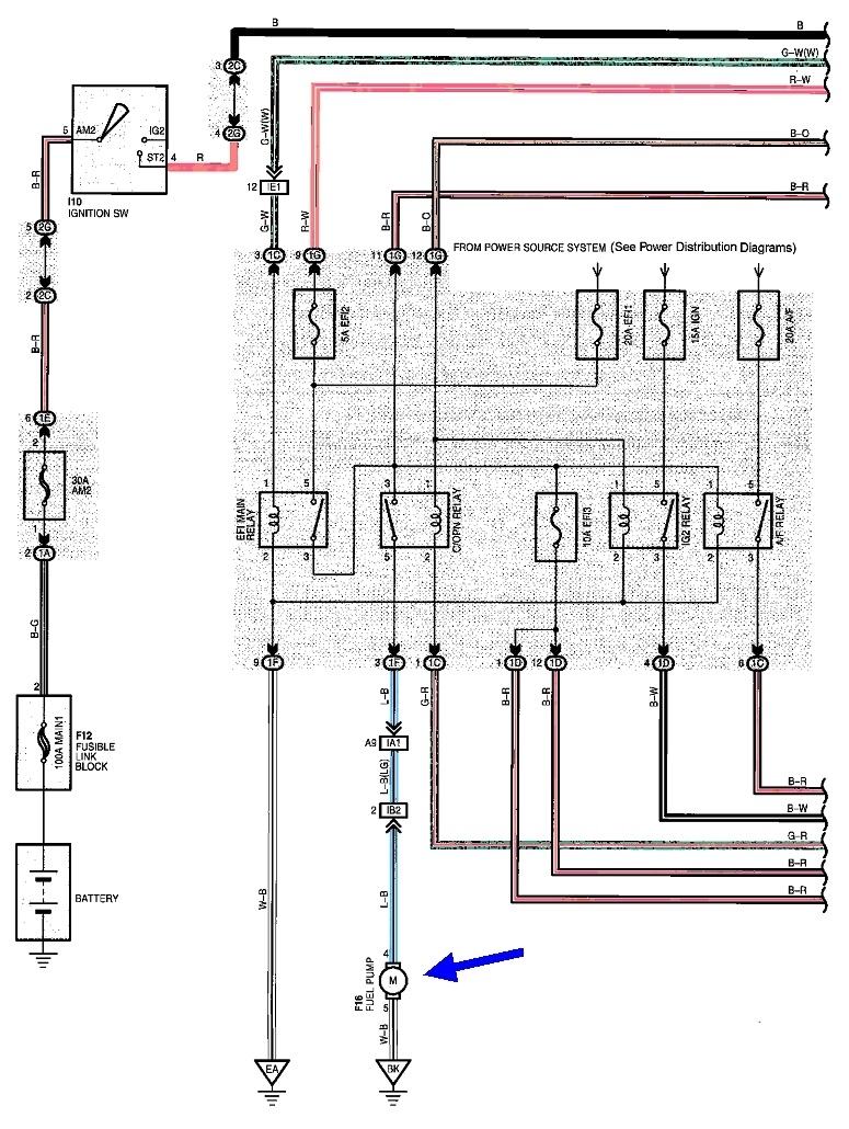Hello, there is no voltage at the fuel pump. I have tested the fuses and relays they are okay. Please could you help me with the circuit diagram?