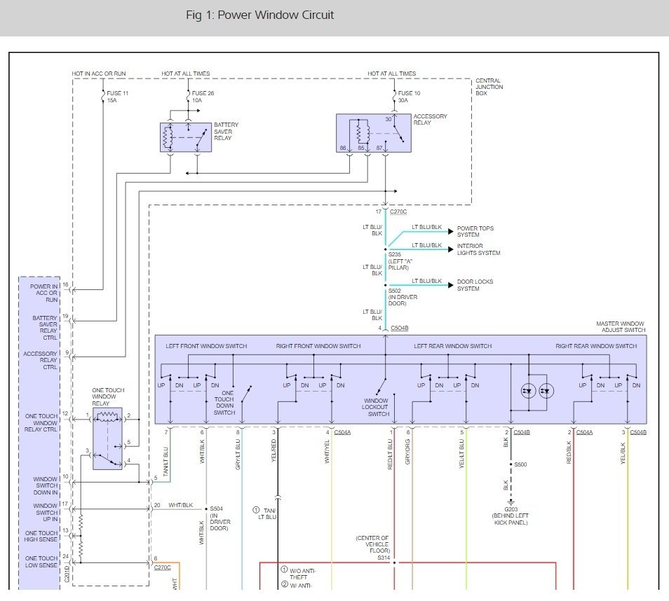 Windows none of them work at all, interior lights either. I replaced fuses, new switch, checked wires in door hinge. Now I bought a relay but not sure where it goes or if this could be problem. We even tried hot wiring to door locks that did not work, no sound under dash either. Please help.