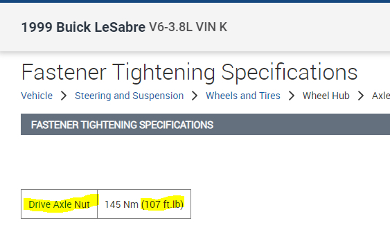 A couple of months ago I would have said the 118 foot pounds was wrong, but in fact, I did run across one model that was listed that low. That really surprised me. The better alternative is to go by what is specified on the instruction sheet that comes with the new bearing assembly. Typically they will call for the same as for the original dealership bearing, but sometimes an aftermarket supplier will have one already in production for other models that will work on a newer one that calls for a lower value. In that case you have to go by what the bearing needs, not what the manufacturer specified for that model year.
