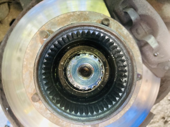 I had taken the manual locking hub apart but could not get the hub spindle nut off because it’s not removable with the typical d85t-1197-a tool (with the notches).