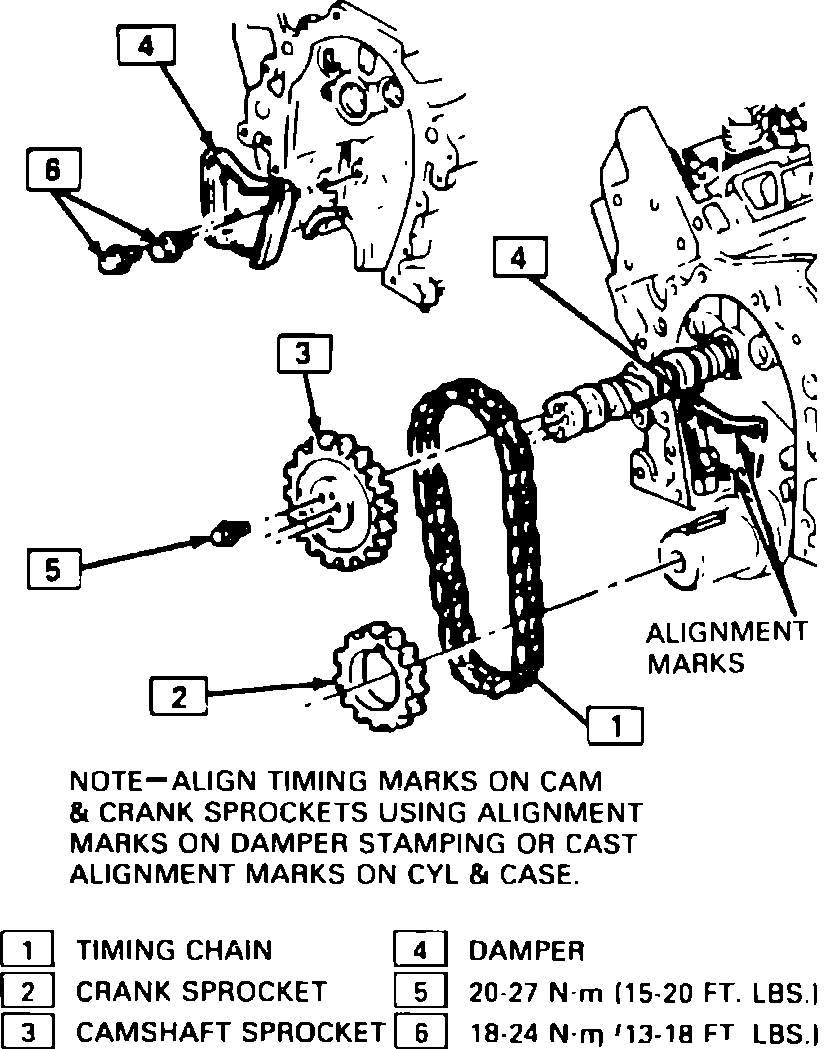 1. Install timing chain damper assembly and bolts. Torque damper bolts to 18-24 Nm ( 13-18 ft. lbs. ).