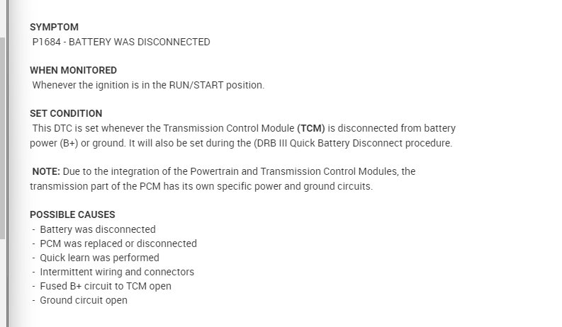 Then the P1684 is just telling you that you lost 12 volts to the TCM which is part of the PCM. However, the TCM portion has its own power and ground, so this is what was lost and not the power to the PCM portion.