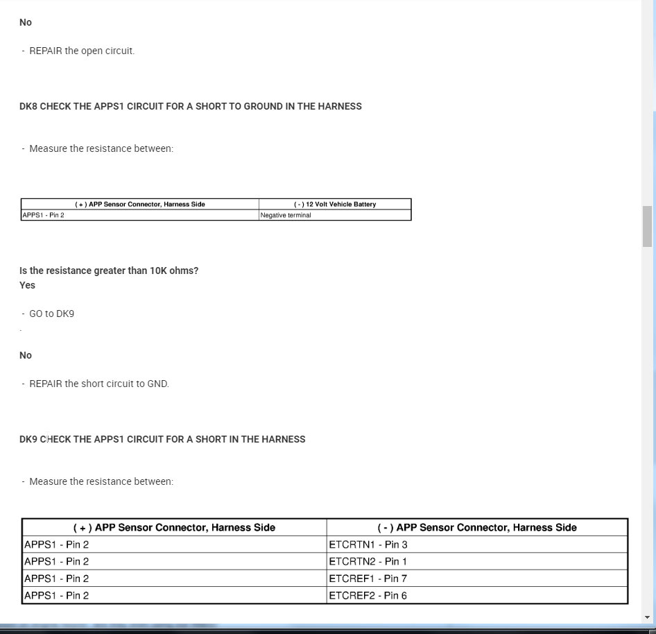 Here are the trouble codes: P2104:FF, P2112:FF, P2121, P2122, P2126, P2127, P2131, P2132. The fuses are okay.