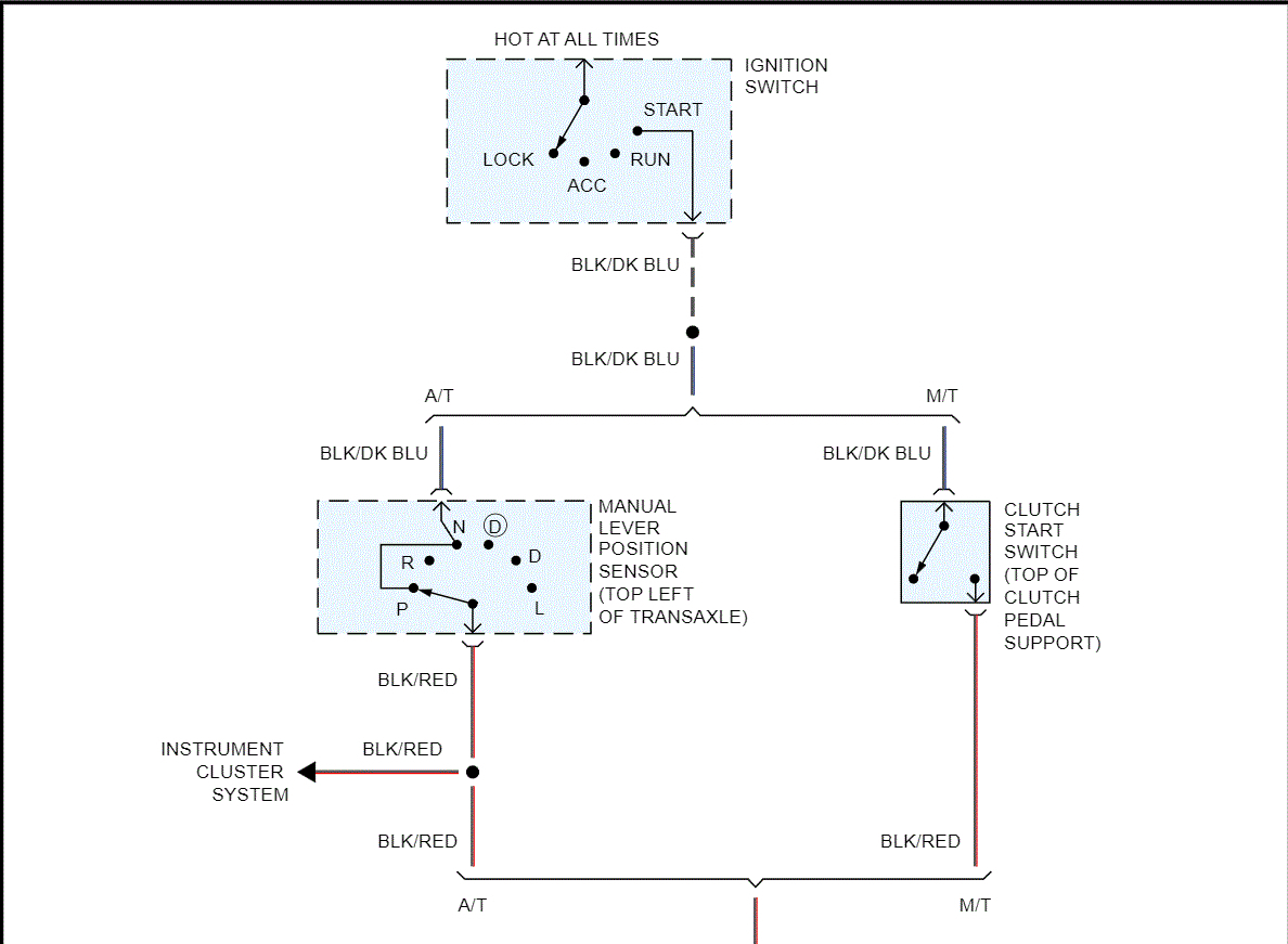 At the starter motor, there will be a heavy gauge black wire. It should have 12v at all times directly from the battery. In addition, there will be a lighter gauge wire that is black with a red tracer. This wire only receives 12v when the ignition key is in the start position. Have a helper turn the key to start while you check the black/red wire for power.