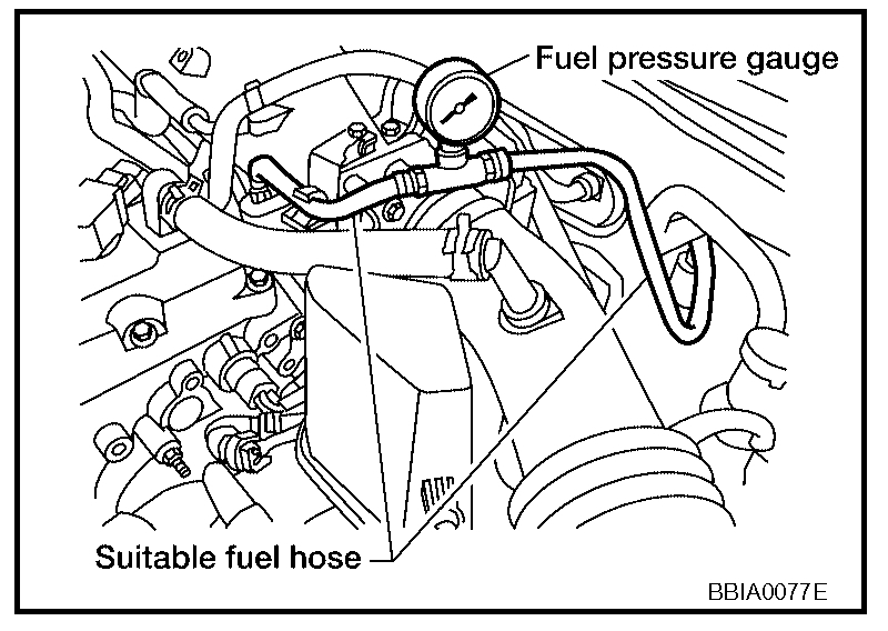- Do not perform fuel pressure check with system operating. Fuel pressure gauge may indicate false readings.