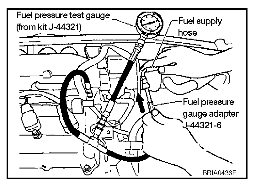 - Use Fuel Pressure Gauge Kit J-44321 and Fuel Pressure Adapter J-44321-6 to check fuel pressure.