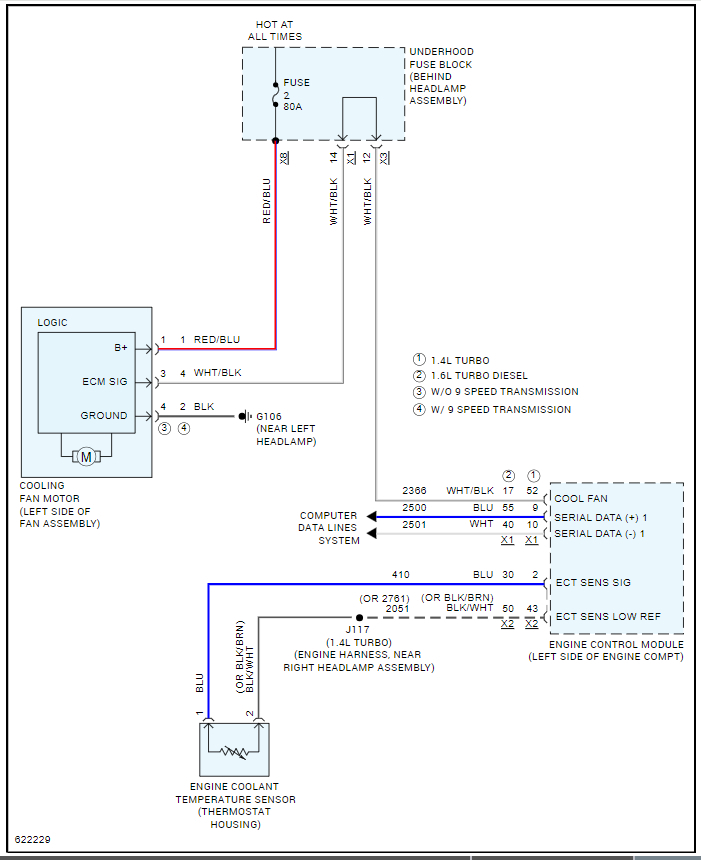 Thanks very much for your help. I agree with what you're saying alright, that there should be codes, I am use to working on the older vehicles, and my experience I had before, is that if the cooling sensor is bad, the car will over heat, all the time, and that is not happening with it, will the check engine light come on if the fan is bad, ken? I would like to try and test the fan, but as I told you before, I can't get the plug for it apart, and I don't want to damage it, and have extra cost, for replacing it also. I seen in videos, where guy use a muti meter, I got one, but the pins on it are to short to probe the connector, to check for continuity, I would like to try and unplug the conector for the fan, and use a 12 volt power supply, and jumper cables to, see if the fan is working or not, but at one of the GM dealer ships, 3 different services advisors, told me you can, t do that on the newer vehicles, it could shot something out and do damage to the ecm, is that true Ken?