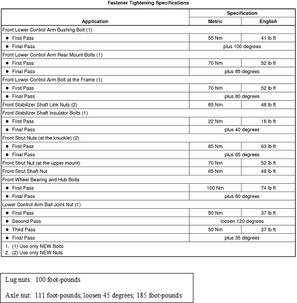 GM's engineers really like to complicate things. Here's what they list for the axle nut. For most other small cars, 180 foot-pounds is a very common spec.
