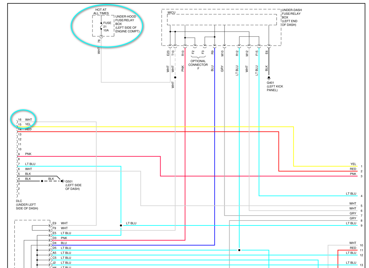 We took our car into Safelite to replace the windshield. When they connected their scanner to the OBD2 port they could not get a reading. So, first of all I need to know which pin to check on the port for power and I need to know which fuse is associated with it. Thank you for your time.