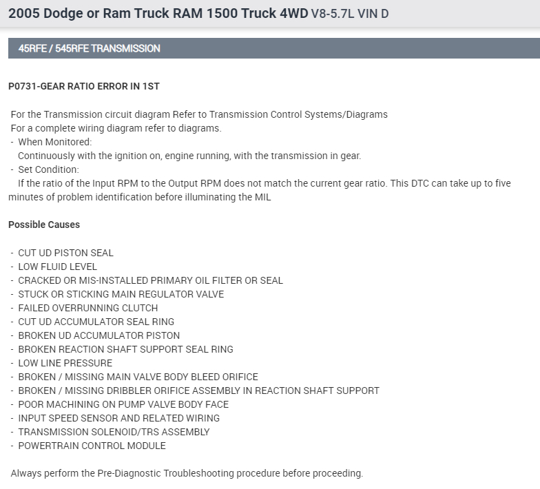 P0731 Gear Ratio Error in 1st