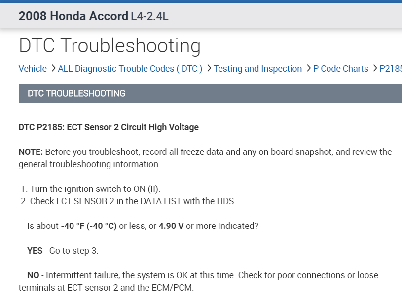NO - This indicates an open circuit somewhere between the sensor connector and the