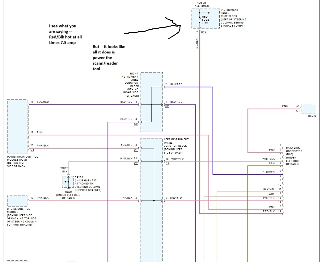 wire on picture one but again, only one hot wire to the DLC I guess I can run a jumper and by-pass any harness problems. The car runs and idles fine -- it seems slightly better when the CEL lite is out -- not really limp mode but noticeable. I've only pot 3000 miles of the 213,000 on it -- fuel injectors couldn't hurt but the have their own power and relay -- coils should show a miss fire but they get replaced at my first tune up. I've owned Toyota's
