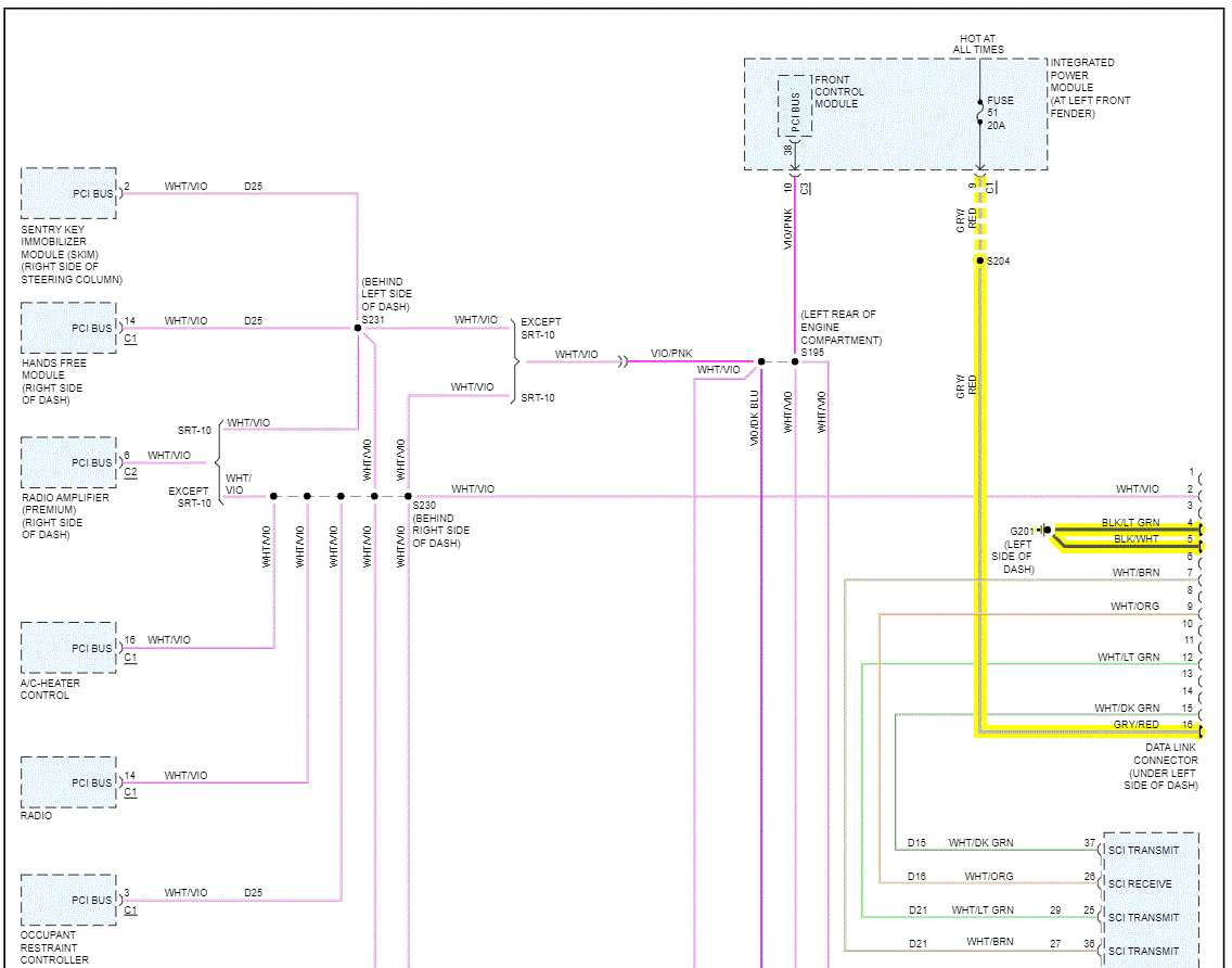 Pics 2 and 3 are the computer data line schematic showing the fuse and wiring to pin 16.
