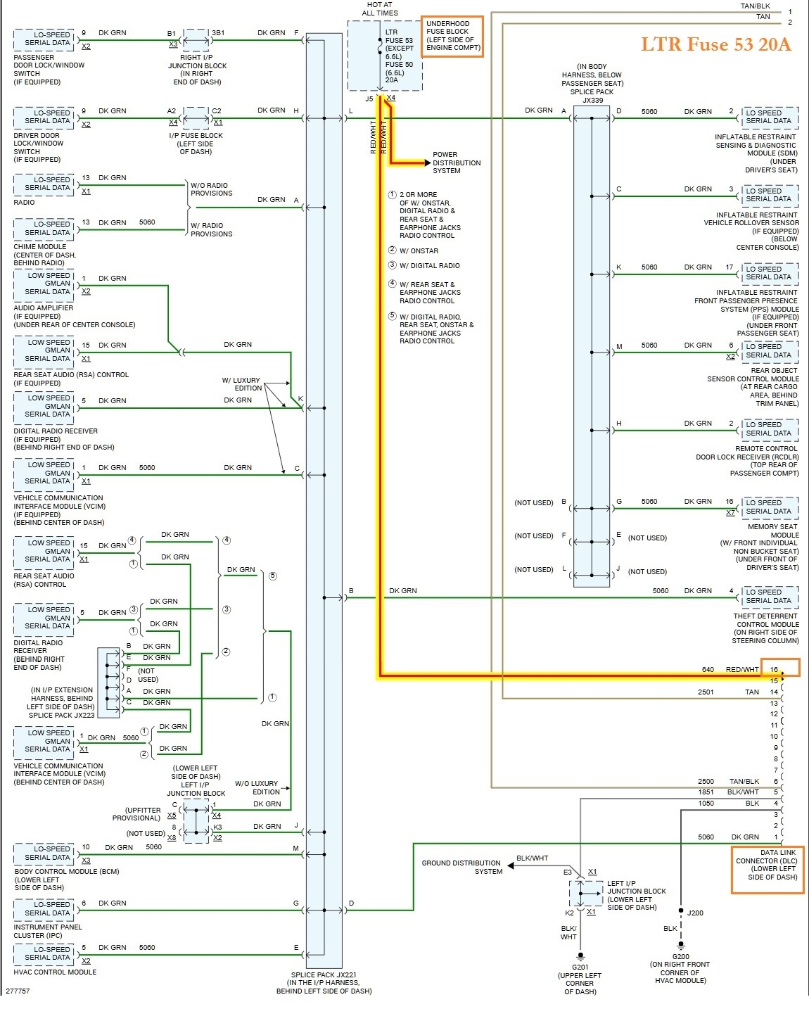 Here is the wiring diagrams for the Data link connector, notice power also goes to the I/P Accessory power outlet, so I would make sure nothing fell into the power outlet and shorted it out, blowing the fuse.
