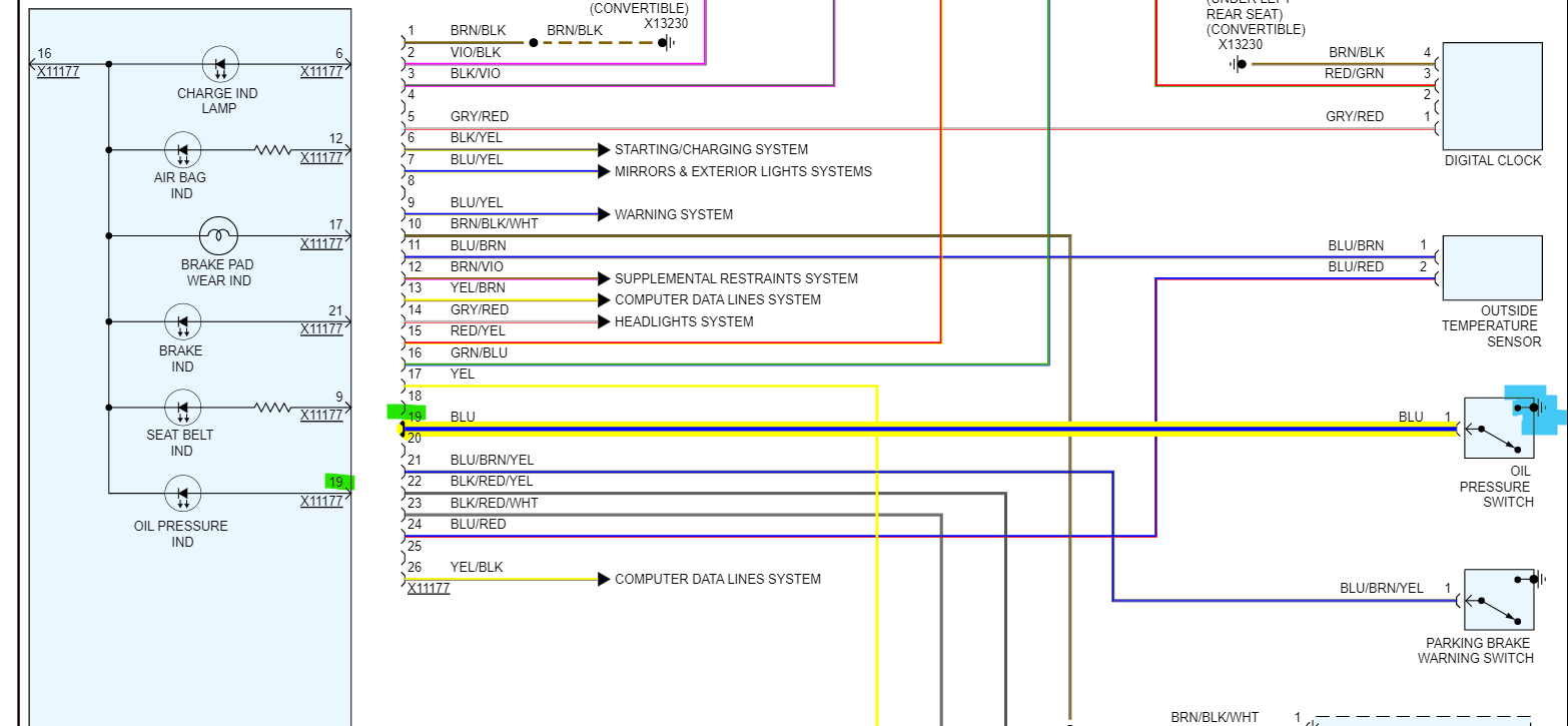 For the Cluster (diagrams 4 and 5) you can see they don't give us barely anything. It shows the connector and wires to it but doesn't show anything about the Cluster at all. There's no Tach listed, so I couldn't even tell you which wire it was on.