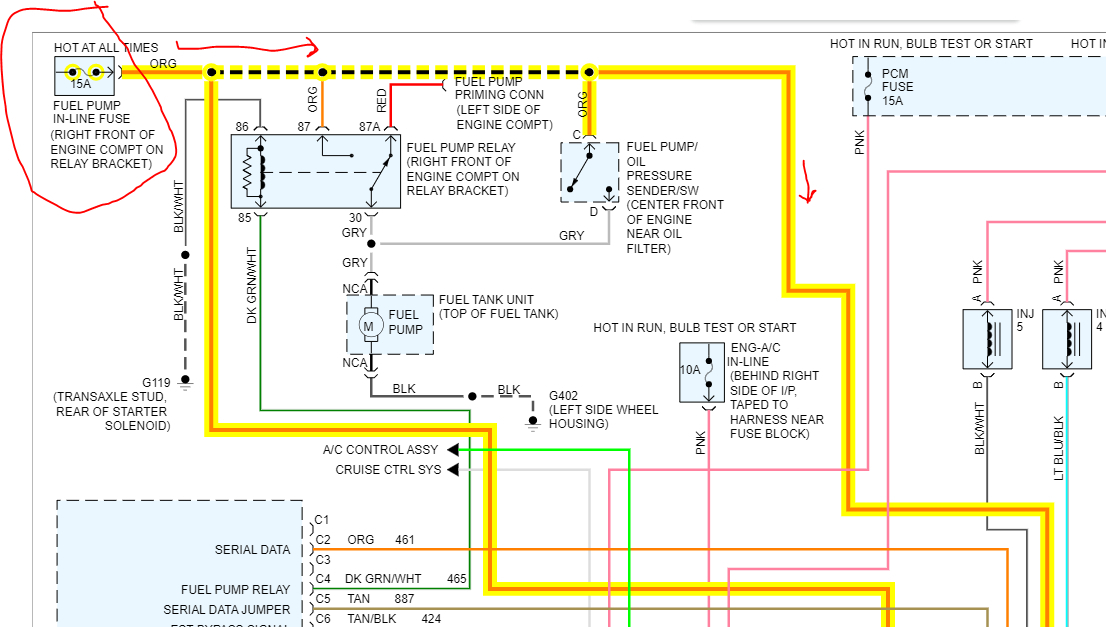 I attached two pics below showing the power supply. Letter M, which I didn't highlight, receives power from the same fuse.