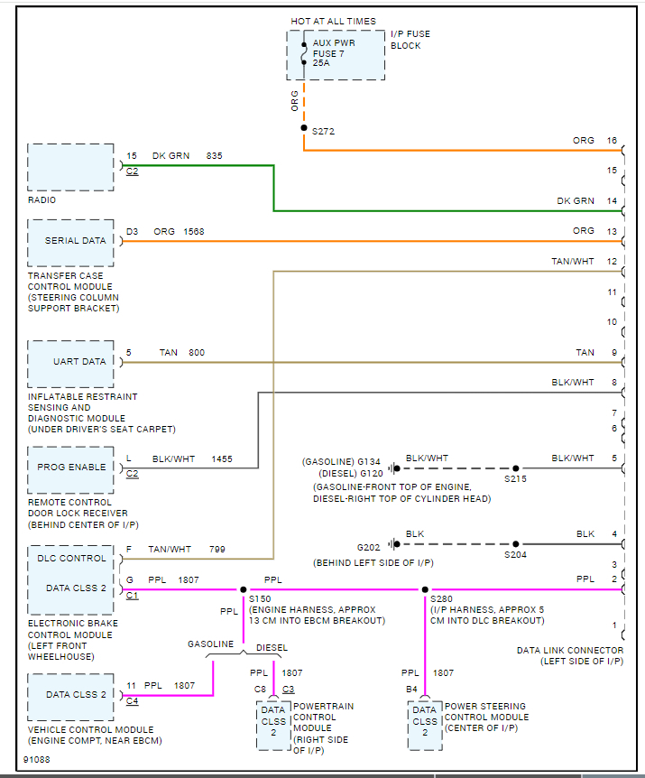 Did you check for power grounds at the data port connector? This guide can help you test it, and I have included the data port wiring so you can see which wires to test.