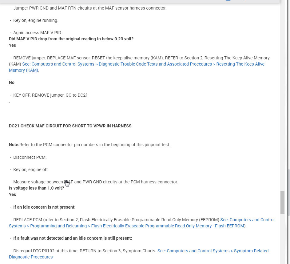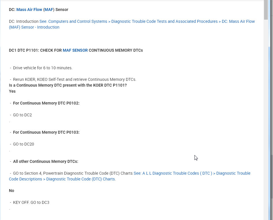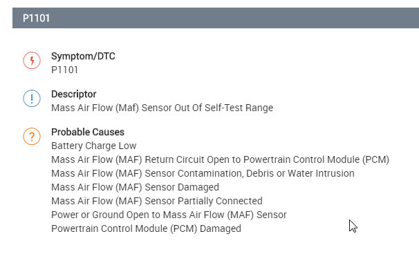 Here is the testing for the P1101. Just let me know what scan tool you were using as well. That may be the reason it is pulling the P0101. If that is the case, then let's just use this test. Thanks