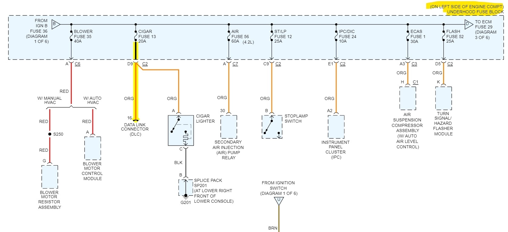 It looks like the data link connector should be fuse 13 in the underhood fuse block on the left side of the engine compartment. Please see the diagram below.
