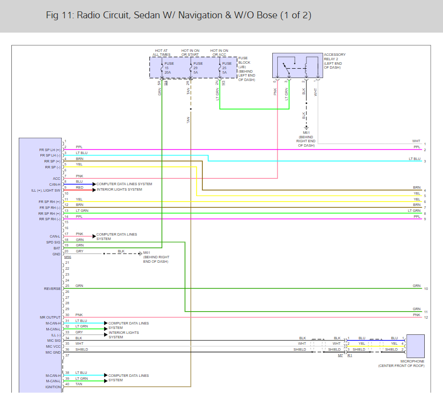 We need to check fuses # 29, 25 and 15. If they are okay we need to check the accessory relay. Here are the radio wiring diagrams so you can see how the system works. Also the fuse location and the relay as well. These guides will help you test the fuses and relay. Both can affect the odometer which is controlled by the BCM.