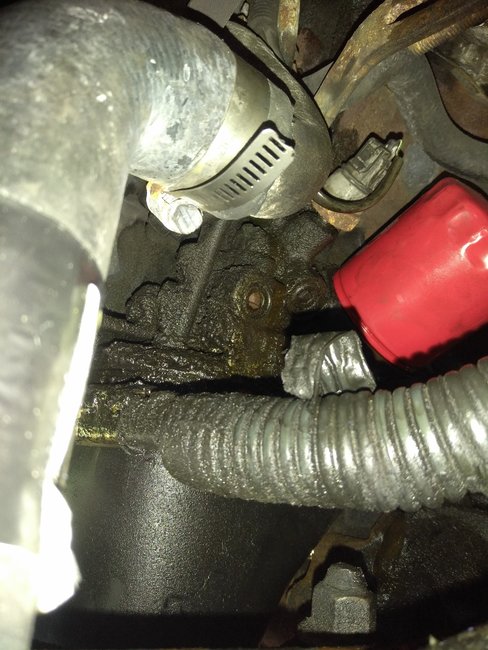 Is this a sign of a blown head gasket or do I need to replace the valve cover gaskets? I change the oil and the oil filter. But I roundup puncturing the oil filter and I had to drive it to go get a new one and oil sprayed everywhere but the gunk that is on the engine is not leaking anywhere it is just there it is not leaking onto my driveway or any where. That sensor next to the oil filter is that the temperature gauge sensor? Because my temperature gauge is not working. Any help would be great. And it is running hot even though I change the thermostat and flush the radiator coolant system four times. I have driven it two thousand miles since I have gotten it. It has not overheated though.