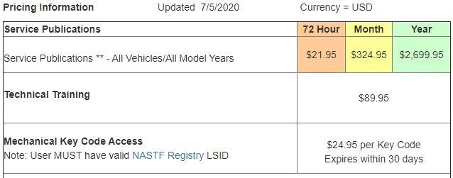 There is also the option of getting access to service information through Ford themselves, but the price is very high as the image shows.