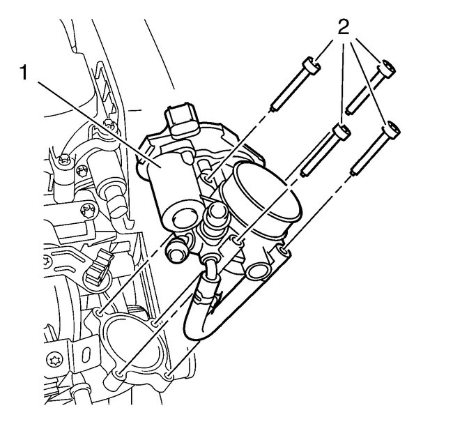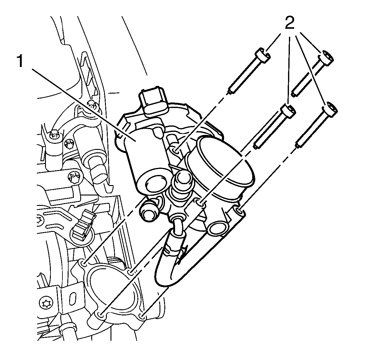 2. Install the 4 throttle body bolts (2) and tighten to 8 Nm (71 lb in).