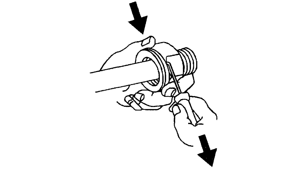 8. Rotate the retaining ring around the quick connector until the retaining ring is out of position and can be completely removed.