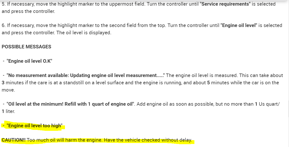 There is a way you can check your engine oil level and I have included it in the diagrams down below, as well as the capacities for your vehicle's engine. Please go through these guides and get back to us with what you are able to find out. There is a warning message that will appear if you have overfilled the engine with oil, so if you didn't see it displayed, you should be alright.