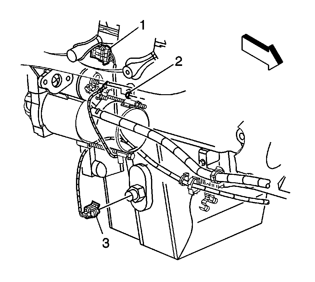 9. Install the positive battery cable clip and bolt to the oil pan.