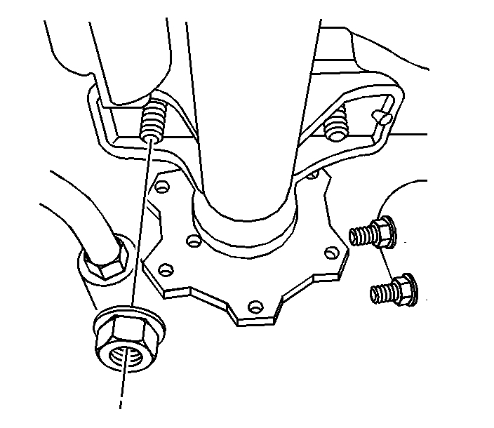 1. If equipped with Four Wheel Drive (4WD), remove the inner axle housing nuts and washers from the bracket.