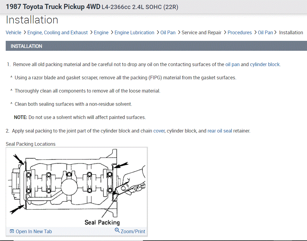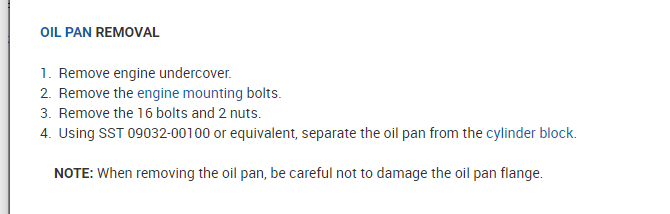 Do a google search for 22RE oil pan removal and there are a few videos of guys doing both of these "tricks."