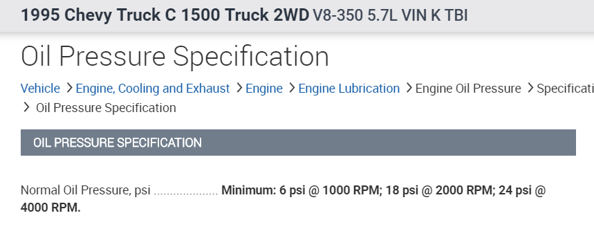 I changed oil and put in 15/40 acc the oil pressure went to 25 lbs at 3000 rpms and 10 at idle. But, shouldn't have to do this. There are no knocking or ticking noises and were non before I changed oil. I just put this motor in last week.