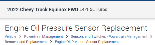 First, to replace the oil pressure sensor, the intake manifold needs to be removed so you can access the sensor. This vehicle should be under warranty 100%. Have you contacted a dealership for repairs?
