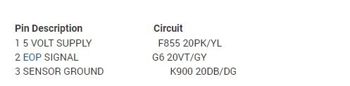 I attached the connector diagram for you. In order to test the output, you need to back probe the signal wire while the engine is running. When you increase and decrease the RPM, the voltage should change between 0 and 5 volts.