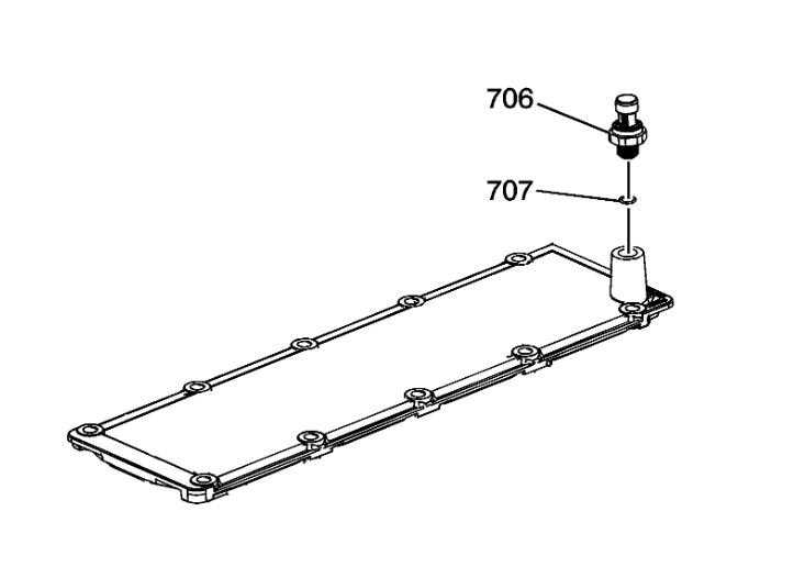 3. If not equipped with active fuel management perform the following step, using J 41712 or equivalent, remove the oil pressure sensor (706) and washer (707).