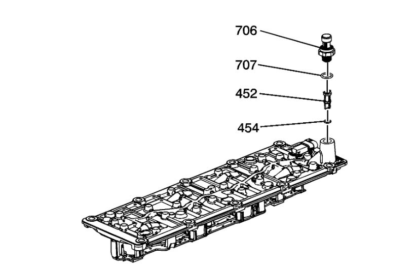 4. If equipped with active fuel management perform the following step, using J 41712 or equivalent, remove the oil pressure sensor (706) and washer (707).