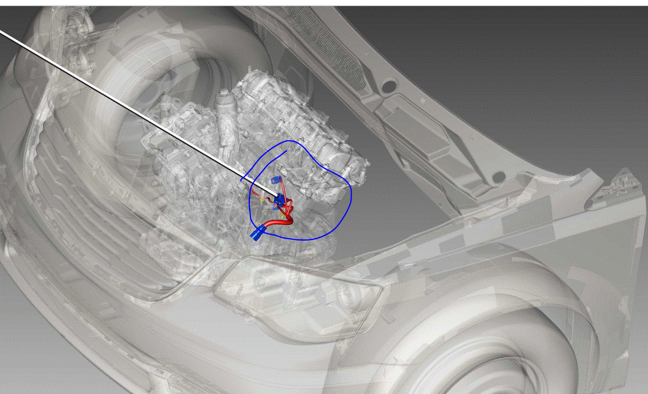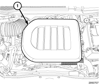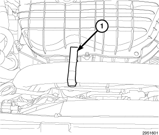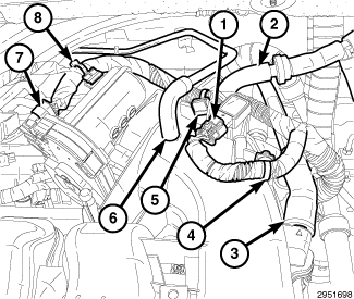Engage the upper radiator hose retainer (1) to the upper intake manifold.