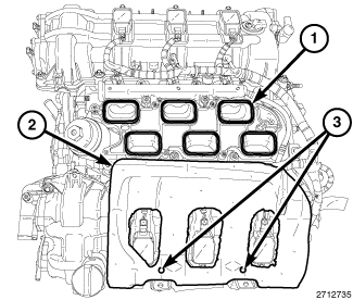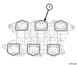 Remove and discard the six lower intake manifold to cylinder head seals (1).