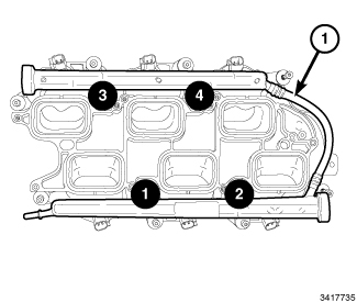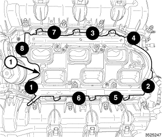 Prior to installing the upper intake manifold, verify that the four fuel rail bolts were not inadvertently loosened. The bolts must tightened in the sequence shown to 7 NÂ m (62 in. Lbs.) (Refer to 14 - Fuel System/Fuel Delivery/RAIL, Fuel - Installation).