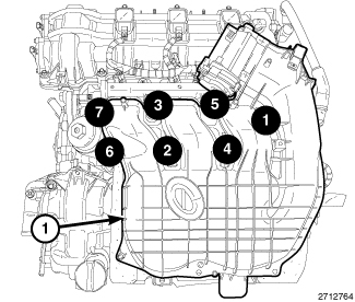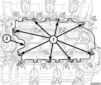 Lift and hold the seven upper intake attaching bolts (1) clear of the mating surface. Back the bolts out slightly or if required, use an elastic band to hold the bolts clear of the mating surface.