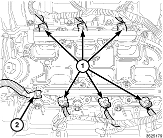 If required, remove the insulator (2) from the LH cylinder head cover.